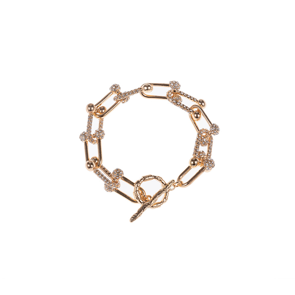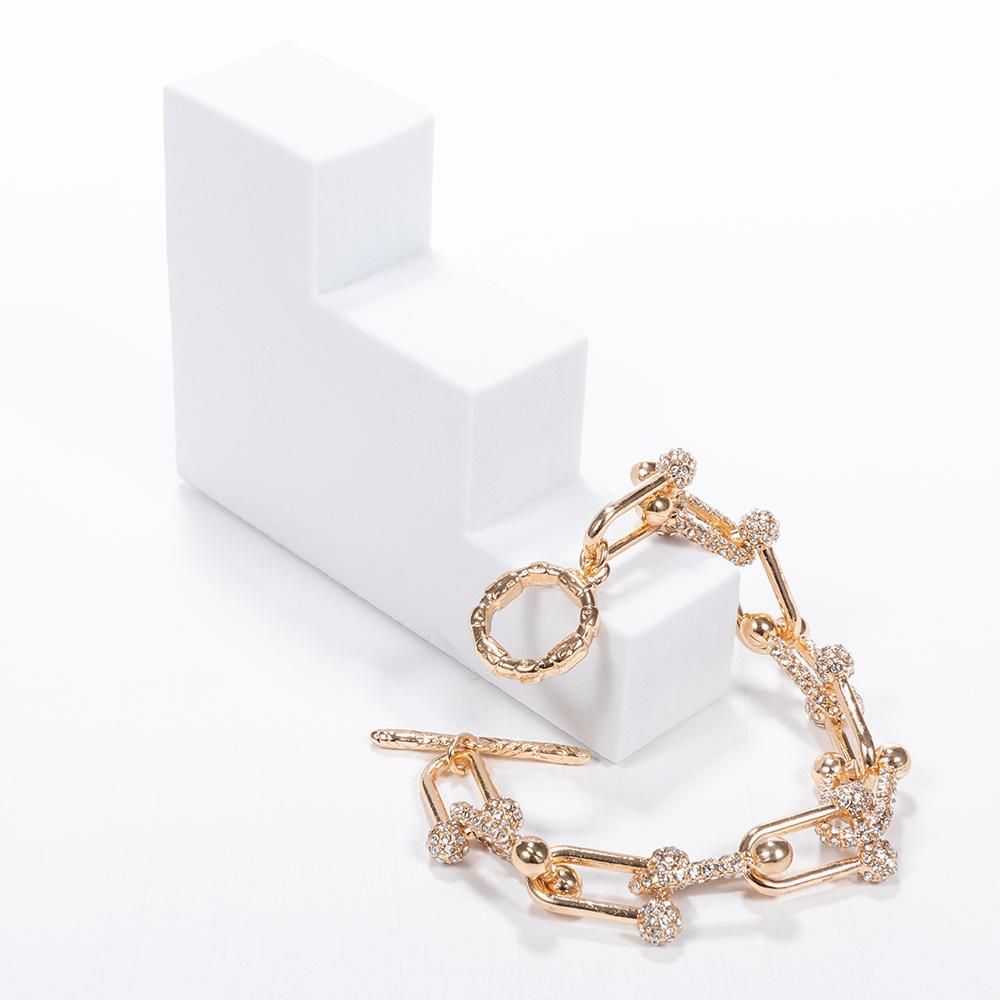 U-shaped links toggle clasp bracelet, with mixed solid and pave links.